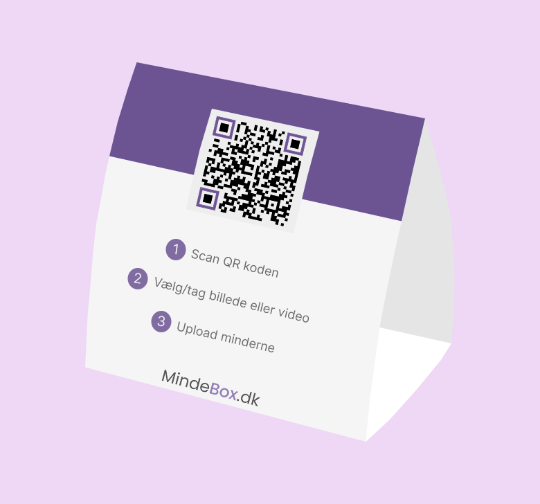 Lad gæsterne uploade billeder og videoer via QR kode - og saml alle minder i jeres fælles MindeBox.